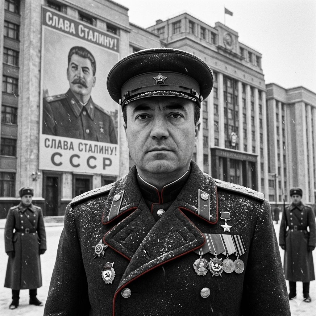 Imagine a cena: um homem de sobretudo escuro, medalhas no peito, o olhar fixo no horizonte gélido de Moscou. Atrás dele, a máquina estatal range sob o peso da neve e do aço. Essa imagem não é apenas um registro histórico; é a materialização de um sistema que prometeu a libertação do homem e entregou a escravidão pela burocracia.